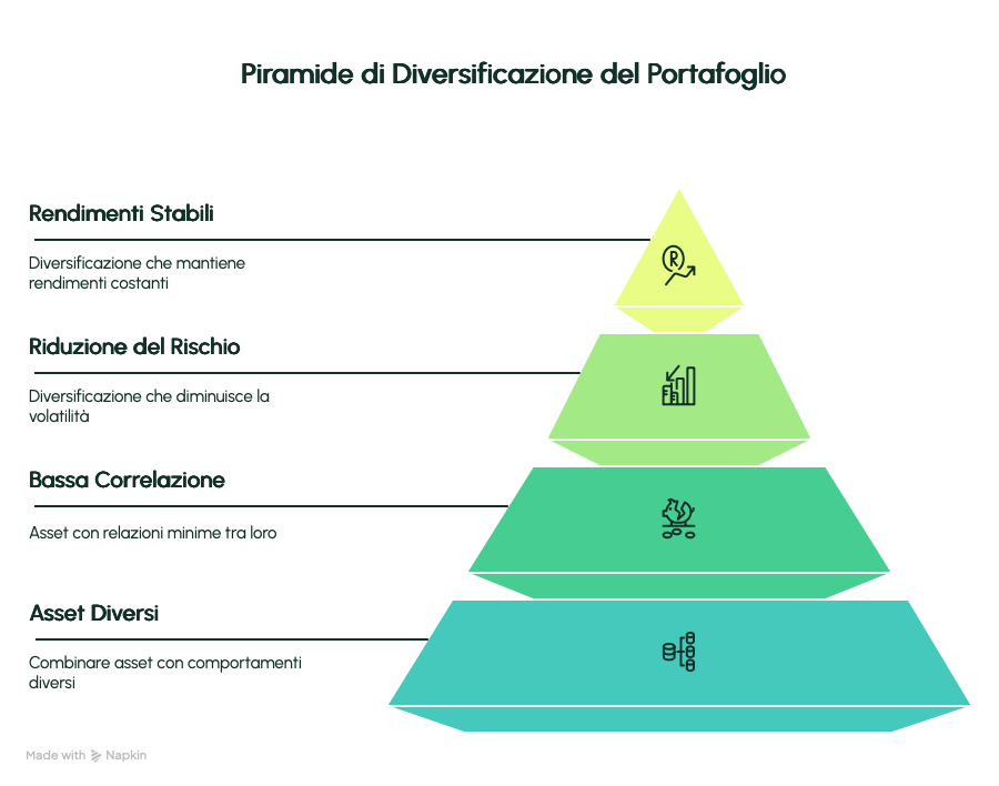 Il principio alla base è semplice quanto potente: combinare asset che si comportano in modo diverso tra loro, in modo da ridurre la volatilità complessiva e costruire una struttura resistente agli shock di mercato.