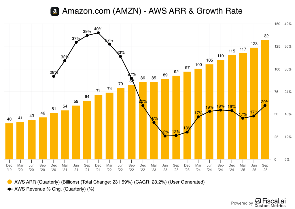 - AWS: $33.0 miliardi (+20% Y/Y)