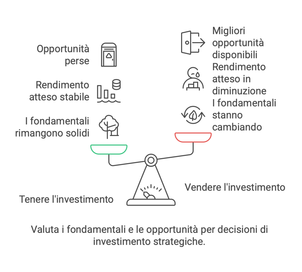 Restare investiti in un’azienda che “va bene” può impedire di cogliere opportunità che “vanno meglio”. Il capitale è limitato: un buon investitore sa riallocarlo in modo ottimale, anche se richiede abbandonare vecchie convinzioni.