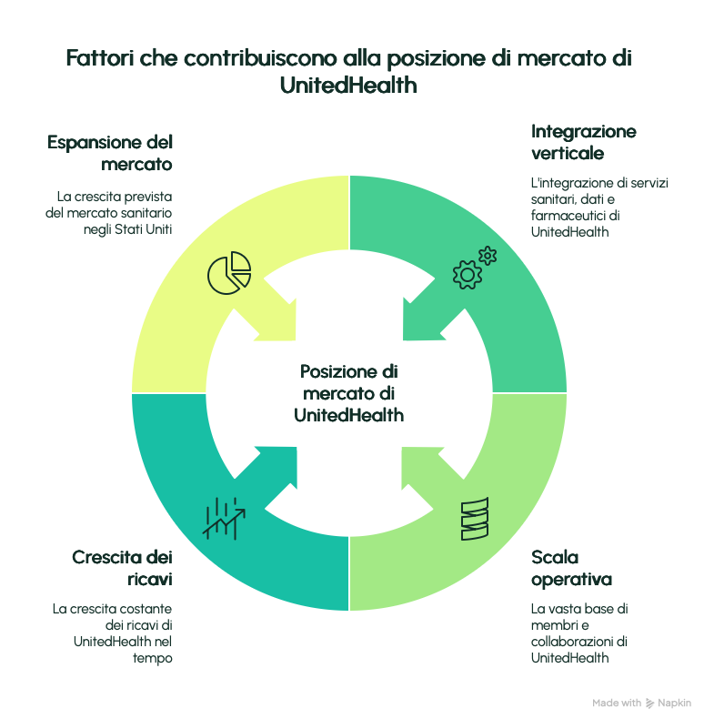 UnitedHealth è il leader indiscusso del settore sanitario negli Stati Uniti, con oltre 51 milioni di assicurati e una rete di assistenza che include 1,7 milioni di medici e 650.000 ospedali. La sua forza risiede in un modello di business unico: l’integrazione verticale. Attraverso le sue due divisioni principali, UnitedHealthcare (assicurazioni sanitarie) e Optum(servizi sanitari), l’azienda controlla l’intera catena del valore, dalla gestione delle polizze alla fornitura di assistenza medica, fino alla gestione dei benefici farmaceutici. Questo approccio le consente di ottimizzare i costi, migliorare l’efficienza e mantenere prezzi competitivi.
